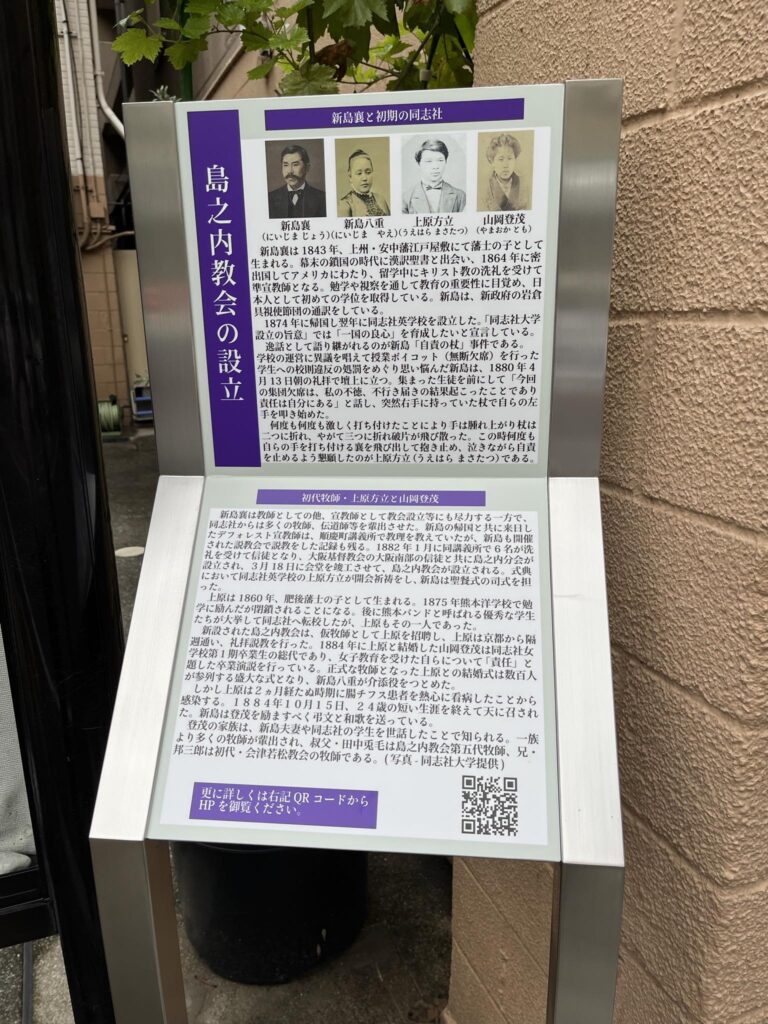 教会の敷地内に新島襄歴史案内板は、全国でも非常に珍しいものです。