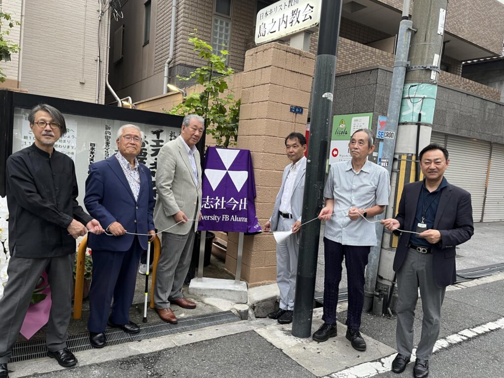 7月2日、大阪心斎橋にある島之内教会で新島襄歴史案内板の除幕式を行いました